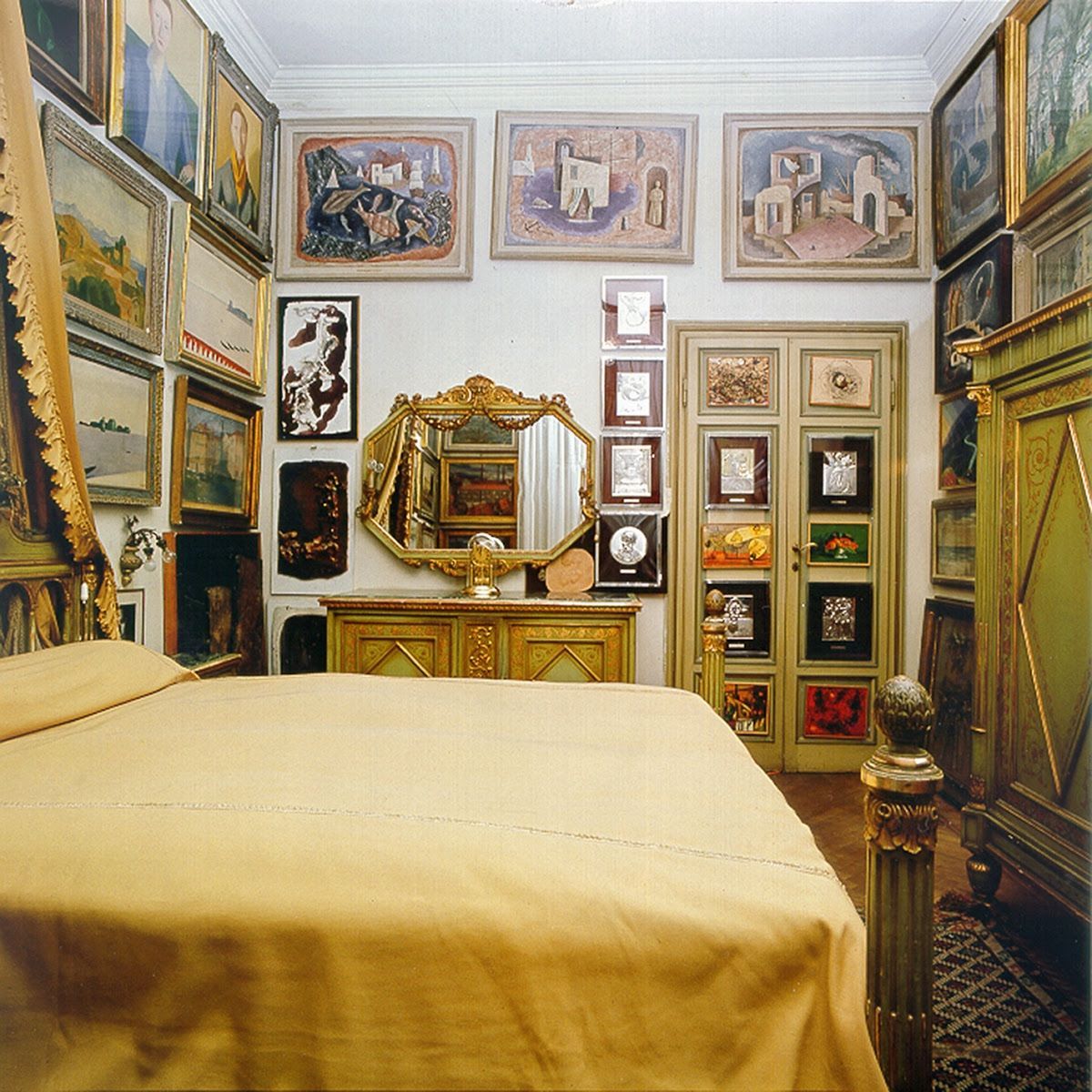 2. A bedroom decorated with works by Renato Paresce including “La casa dell'ondina” (“The house of the Wave,” 1932) and “Il Porto,” 1932.