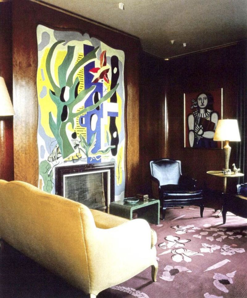 In early 1938, Nelson Rockefeller, working with designer Jean-Michel Frank, commissioned Henri Matisse and Fernand Léger to paint murals that would surround the two mantels in the living room of his 810 Fifth Avenue penthouse in Manhattan. Alberto Giacometti was commissioned to make the pair of gilt bronze and iron andirons.
