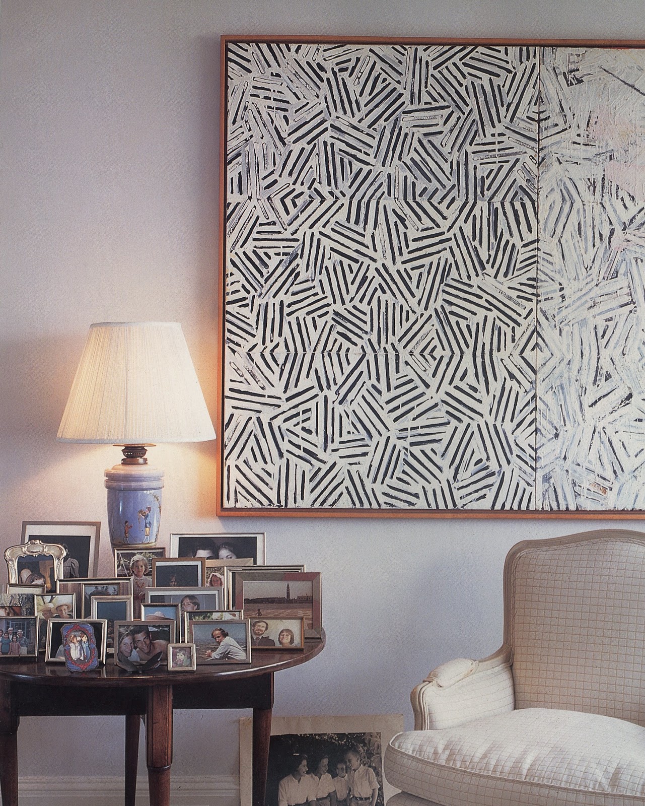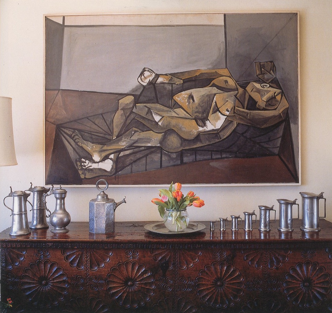 Image: Living room: Picasso, "Le Rêve" (The Dream), 1932; Johns, "Souvenir 2," 1964; "Decoy," 1971; Picasso, "Blind Minotaur," 1934; "Faun Unveiling a Woman," 1936. Dining room: Stella, "Turkish Mambo," 1959; Hesse, "Vinculum I," 1969