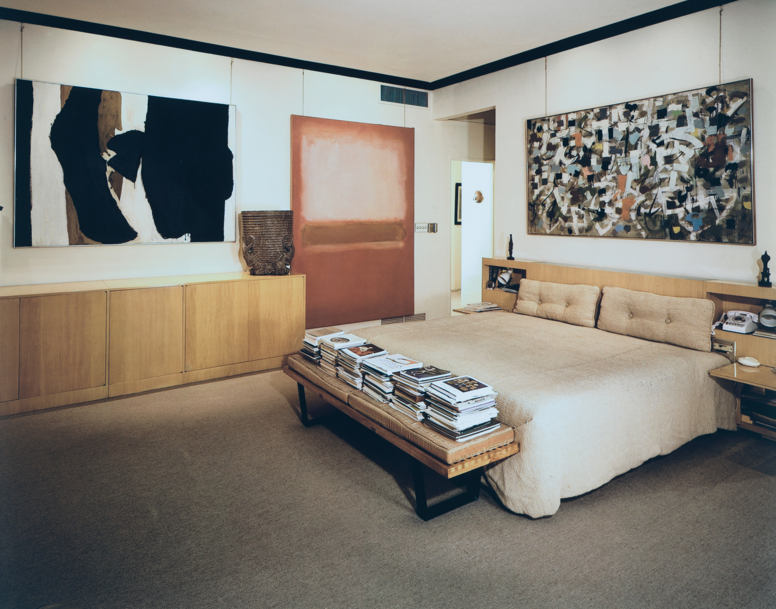 Heller took substantial risks on emerging artists before Abstract Expression was canonized as a historic visual turning point. MoMA largely ignored the style—Robert Motherwell once quipped that one would have to go to Heller’s apartment to see modern art—until the late ’60s, when curator William S. Rubin actively expanded the museum’s holdings. [4] Heller assisted by gifting and selling works including “One,” which MoMA bought in 1968 for $350,000. He often loaned pieces from his collection—sometimes requiring a crane to move them from his tenth-floor apartment.