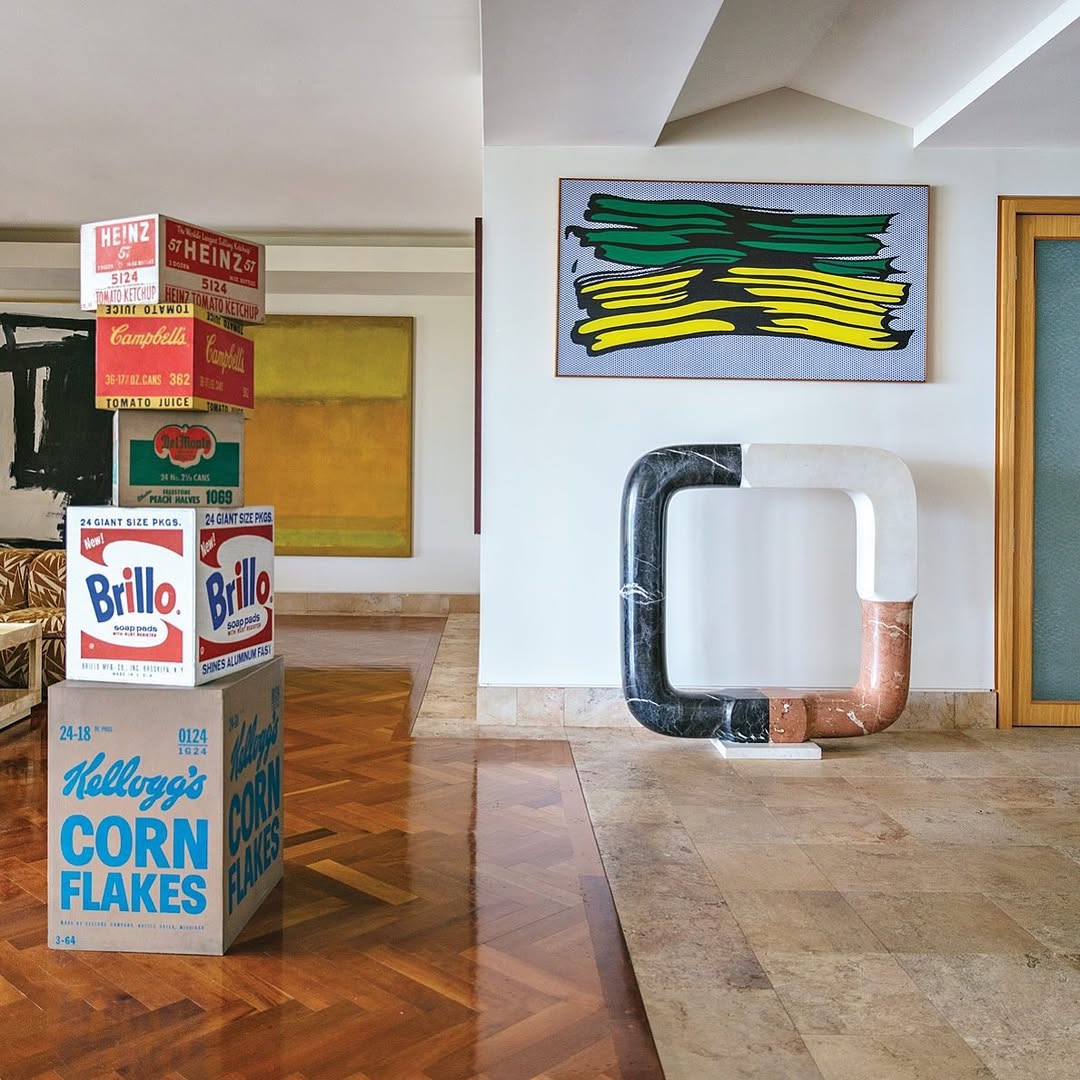 Image: Andy Warhol, “Set of Five Boxes: Brillo Soap Pad; Campbell’s Tomato Juice; Del Monte Peach Halves; Heinz Tomato Ketchup; Kellogg’s Corn Flakes” (1964); Roy Lichtenstein, “Yellow and Green Brushstrokes” (1966); Isamu Noguchi, “Square Ring” (1971); Rothko