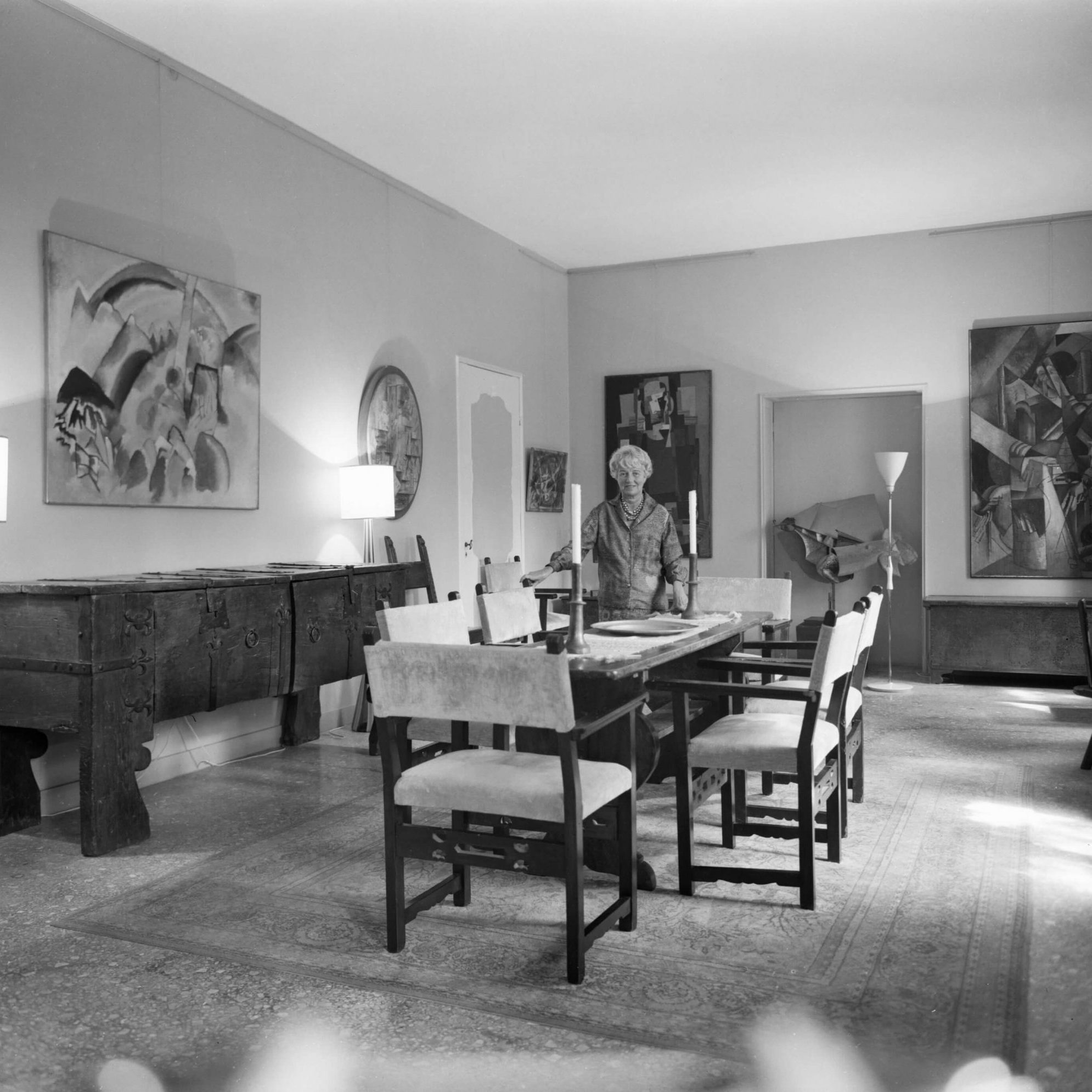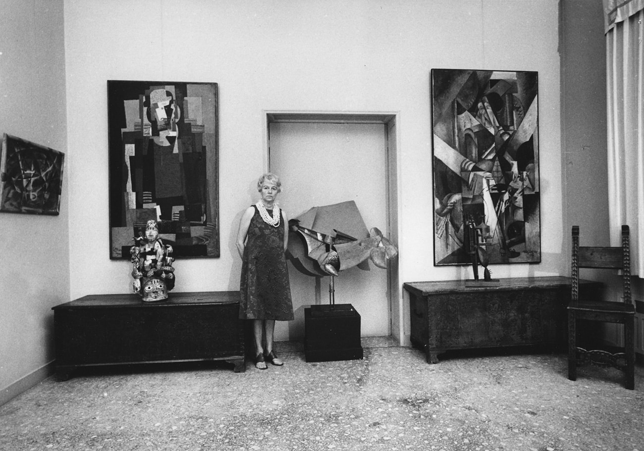 Beginning in 1951, Guggenheim welcomed the public to see her collection, which she displayed in salon style, mixing objects from Africa, Oceania, and the Americas with modernist works by Picasso, Calder, Kandinsky, and more.