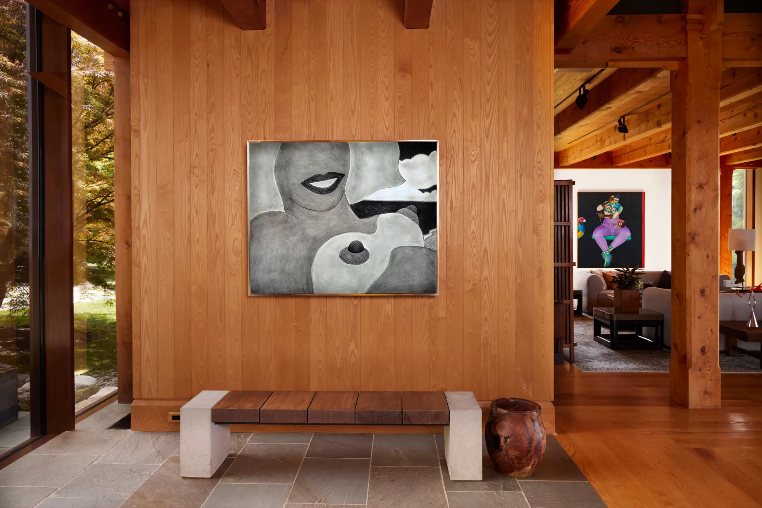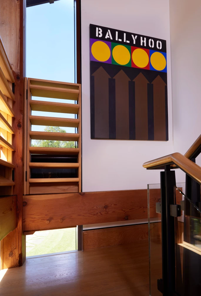 Bob and his wife, Cynthia Vance Abrams, lived alongside their art in a Hudson Valley home inspired by Philip Johnson’s Glass House. Guests to the “Art Barn” were greeted with works by Wesselmann, Fernando Botero, Frank Stella, George Segal, Alex Katz, Christo, and many more. The centerpiece was Isamu Noguchi’s “Study for Energy Void” (1971), a torqued sculpture whose form and concept characterize the artist’s practice. Noguchi created three sculptures bearing this trapezoidal form, but the Abramses’ piece, purchased directly from the artist by Bob in 1979, is the only one made of marble.