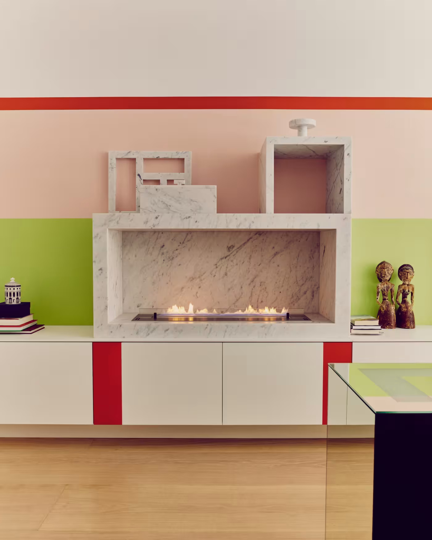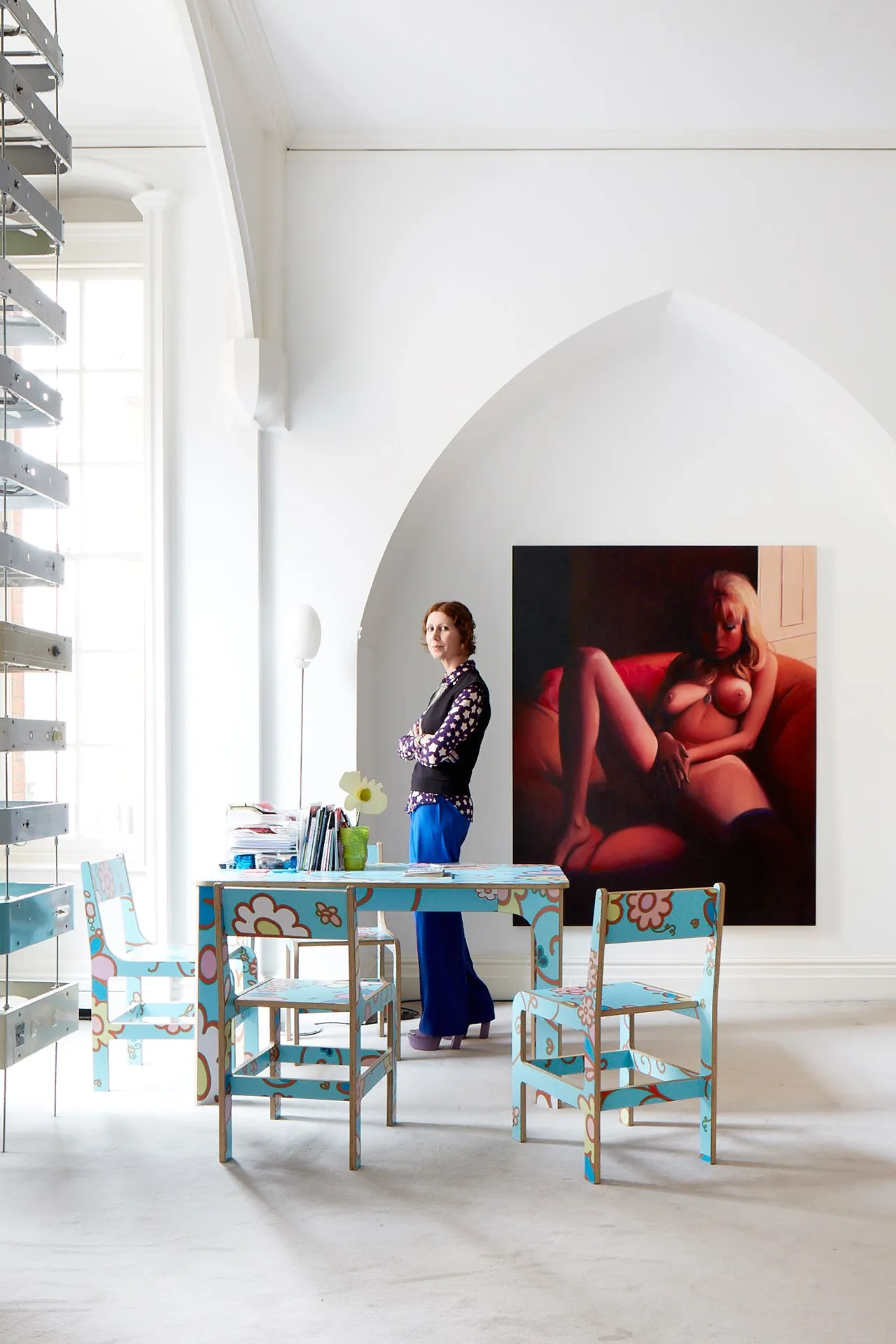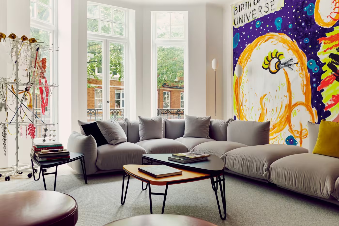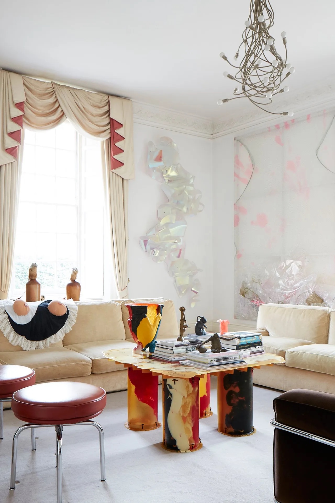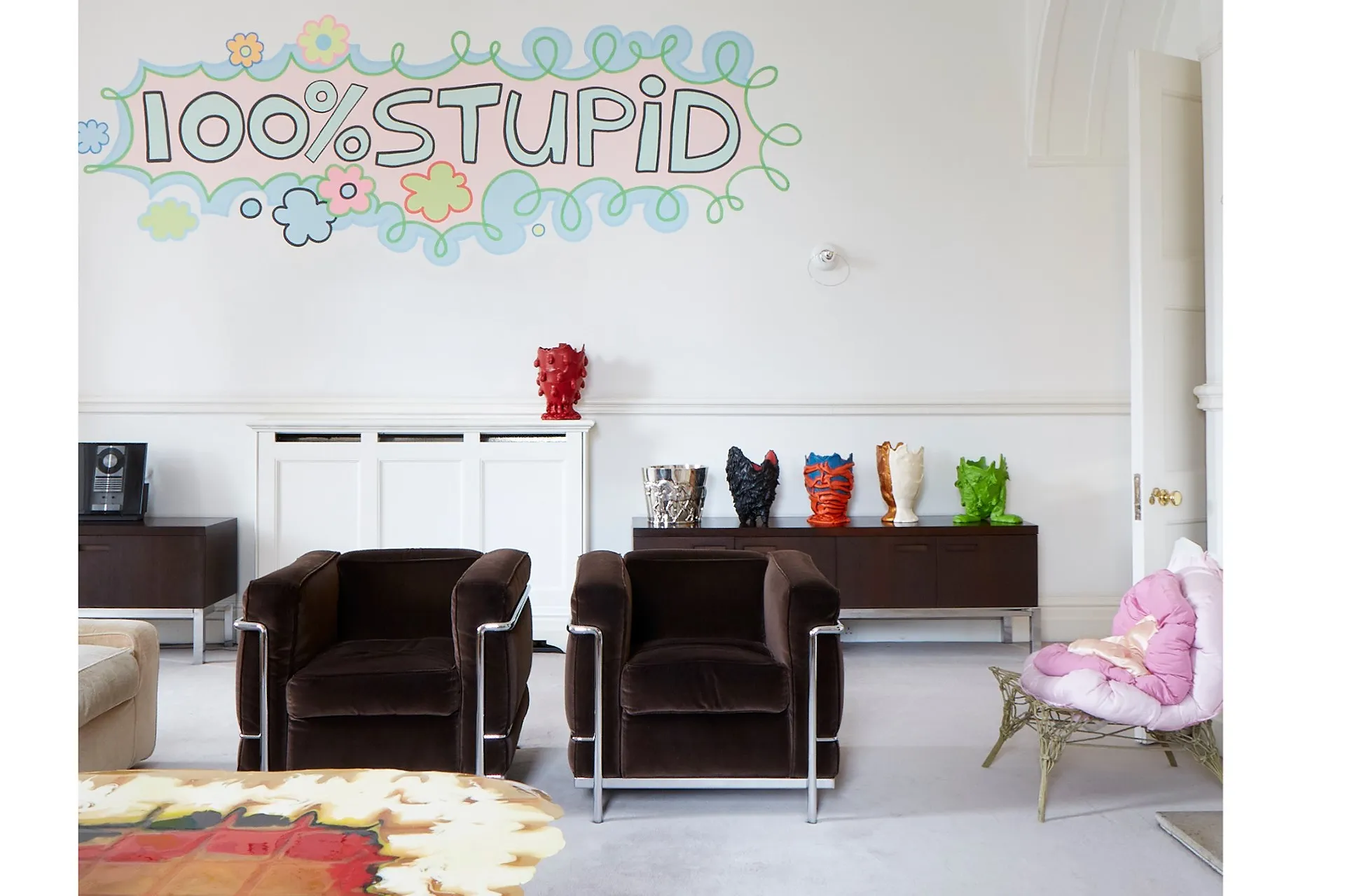 Image: Mural by Lily van der Stokker, vases by Gaetano Pesce, Julie Verhoeven chair