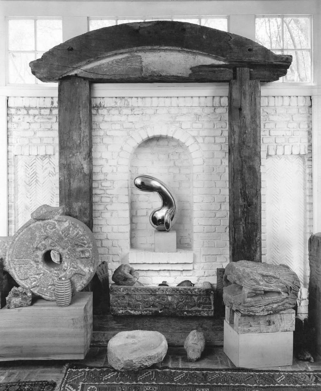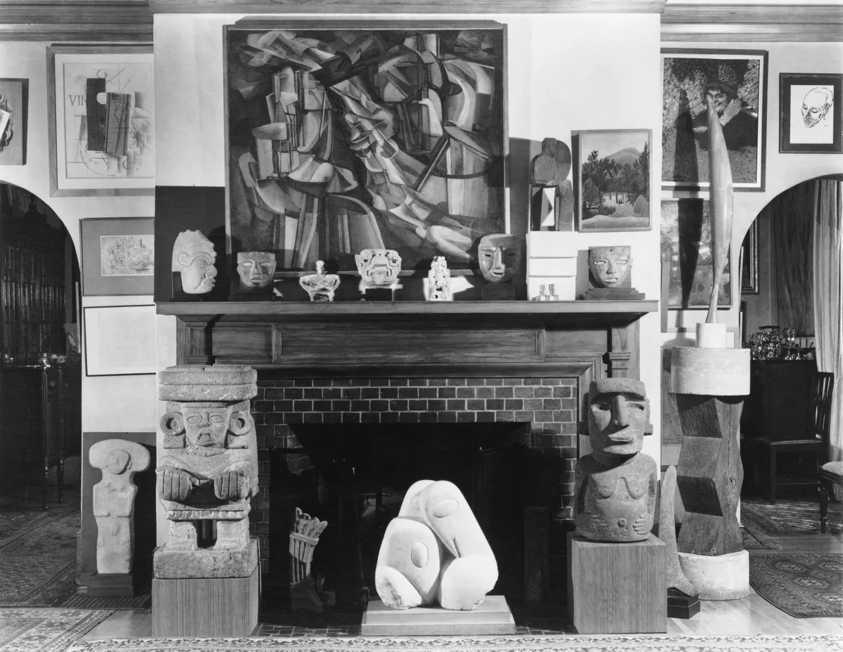 The Arensbergs commissioned a custom entryway for two Brancusi sculptures, “Arch” (ca. 1914–16) and the bronze “Princess X” (1915– 16). Arrangements of pre-Columbian sculptures were displayed alongside works by Duchamp, cubists Georges Braque and Pablo Picasso, and surrealists Salvador Dalí and René Magritte, along with roughly 4,000 rare books and manuscripts, including the world’s largest private library of writings by and about sixteenth-century British philosopher Sir Francis Bacon.