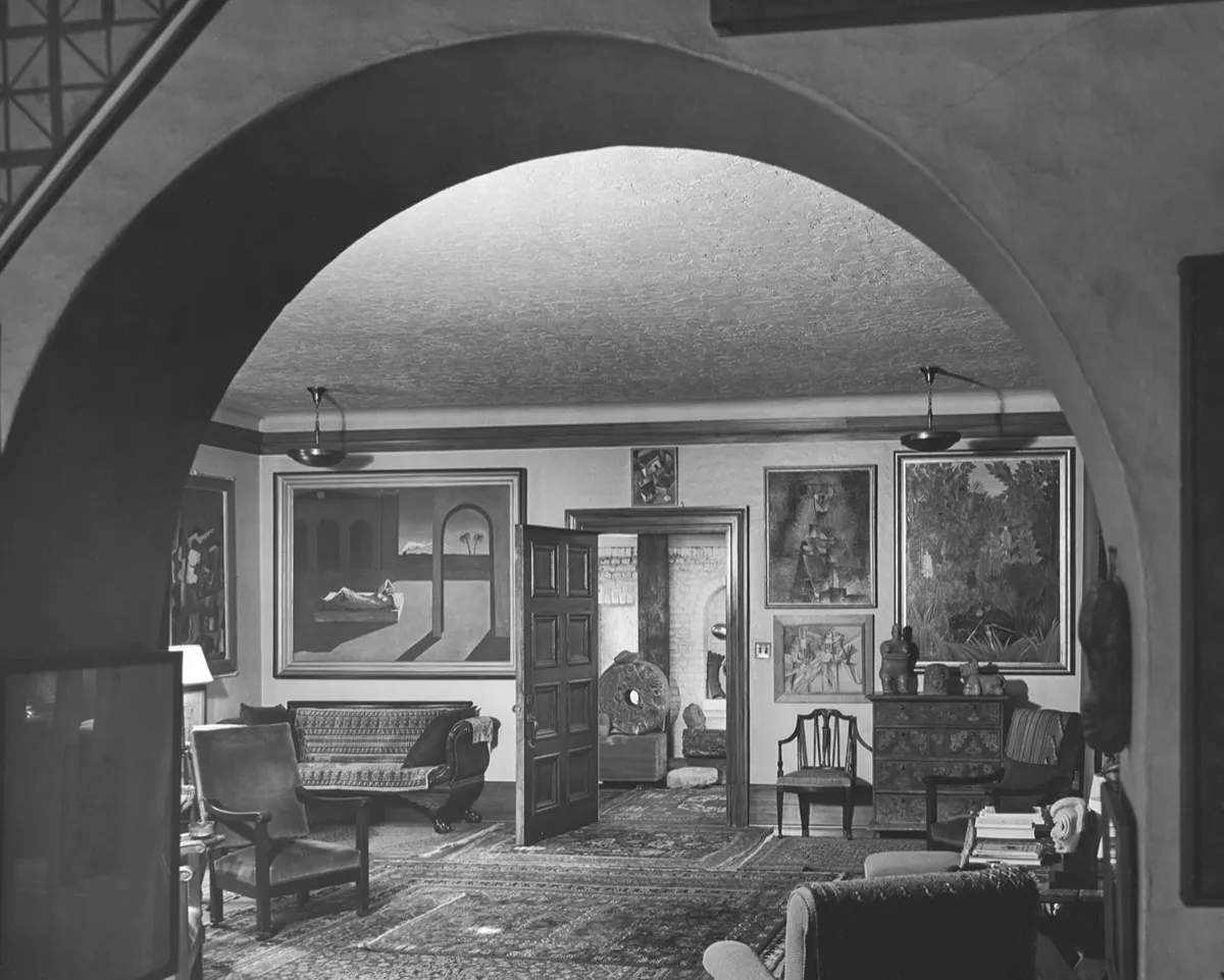 In 1927, the couple moved to their permanent residence at 7065 Hillside Ave. in Hollywood, California. Unlike their New York apartment, the 5,612-square-foot home had plenty of room for their art collection. “Paintings were jammed and crowded on every available space from floor to ceiling,” wrote New York Times art critic Aline Louchheim after her 1949 visit to the couple’s home. “They filled the porch, trembled on the backs of doors, [and] lined the bathrooms.” [4]