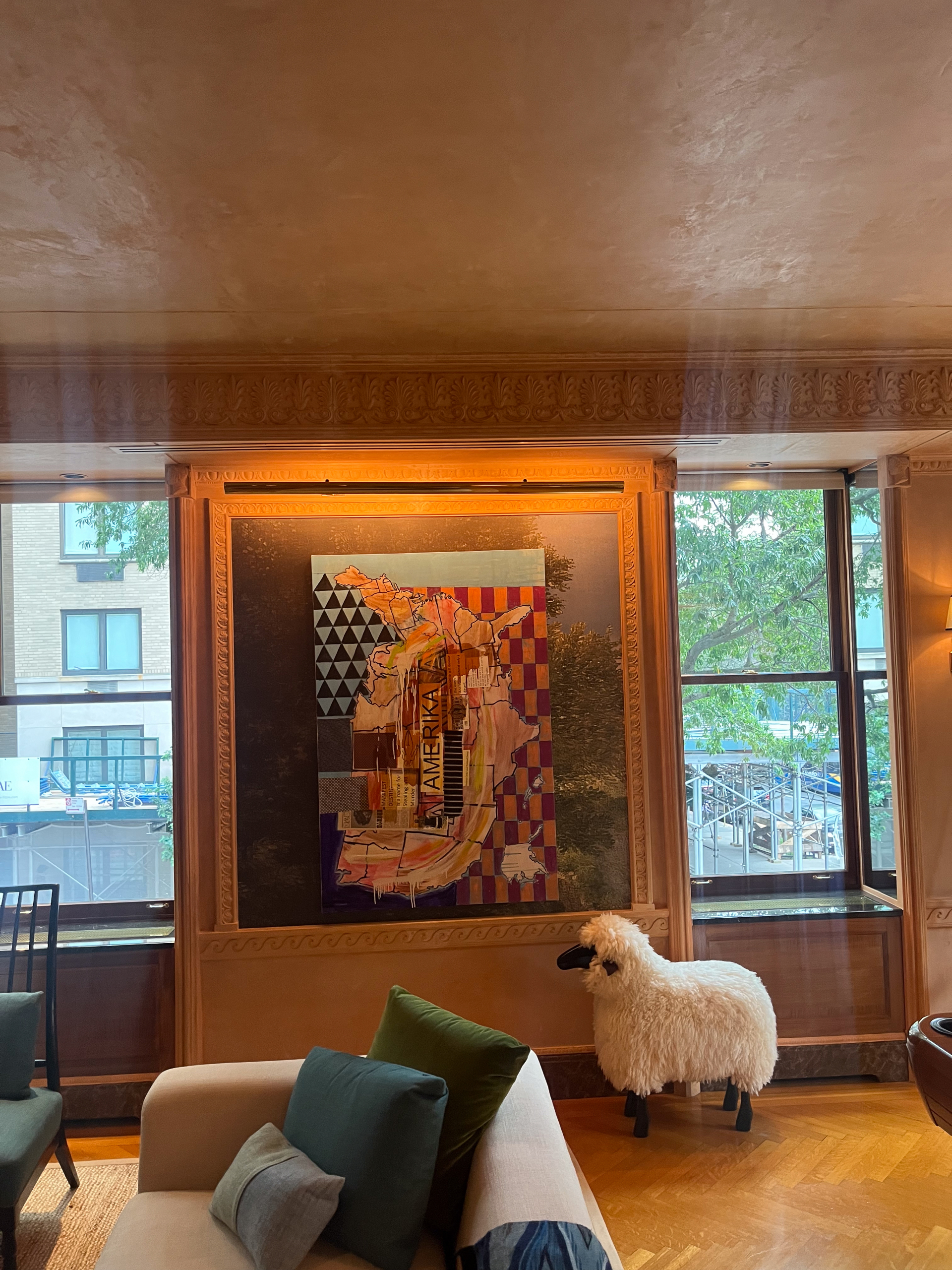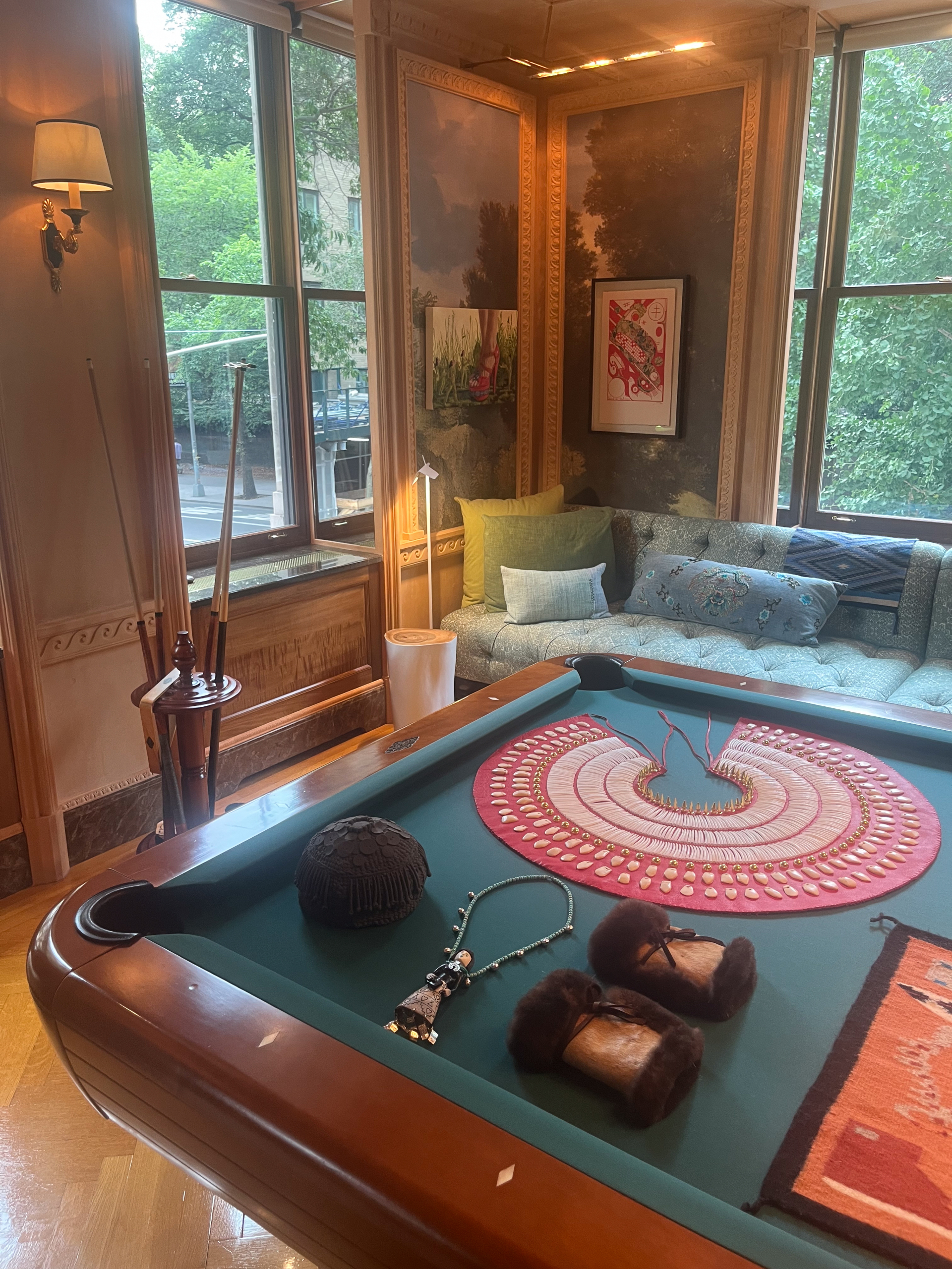 The juxtaposition is deliberate, one suspects. In a traditionally appointed Central Park apartment—the kind of domestic space that has housed American collections for over a century—contemporary Indigenous works by artists such as Ishi Glinsky (Tohono O’odham), Gabrielle L’Hirondelle Hill (Métis), and Jaune Quick-to-See Smith (Salish member of the Confederated Salish and Kootenai Nation) hang alongside pieces by Alice Neel. The effect is not integration so much as productive tension, raising questions about which narratives have been permitted to coexist within such spaces, and which have been systematically excluded.
